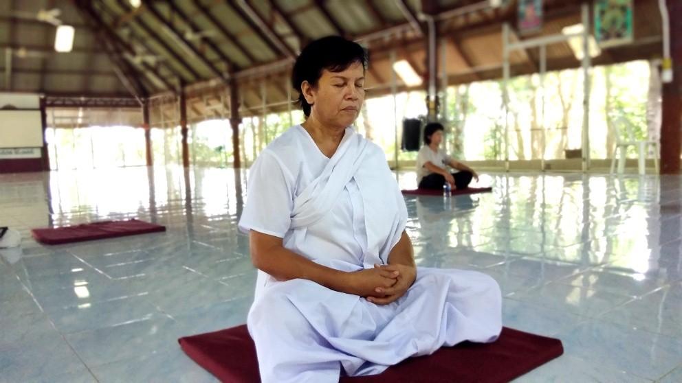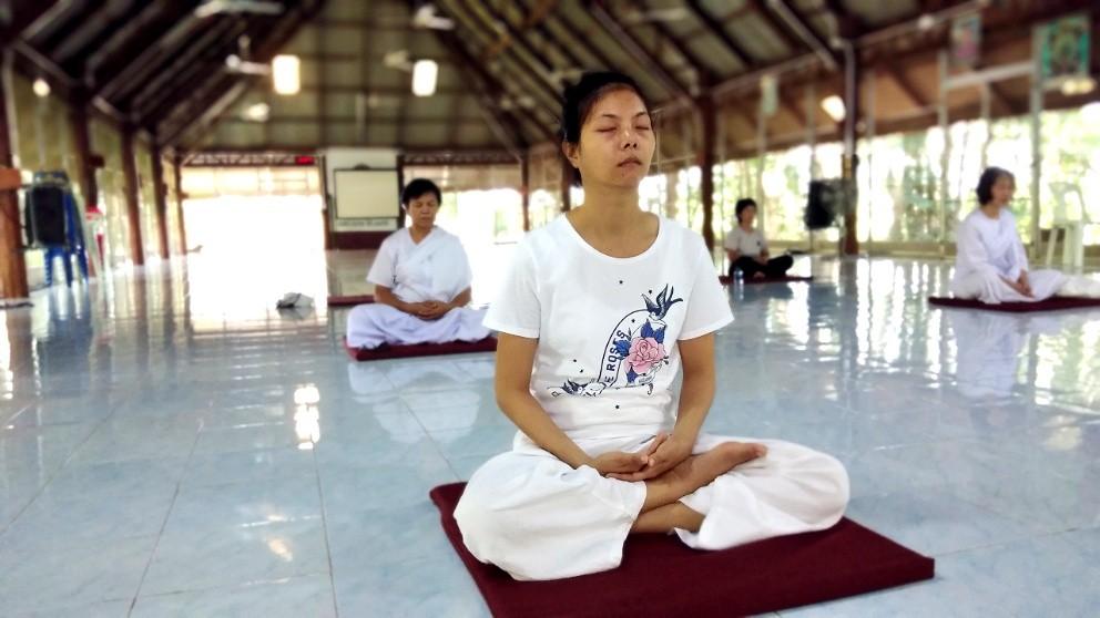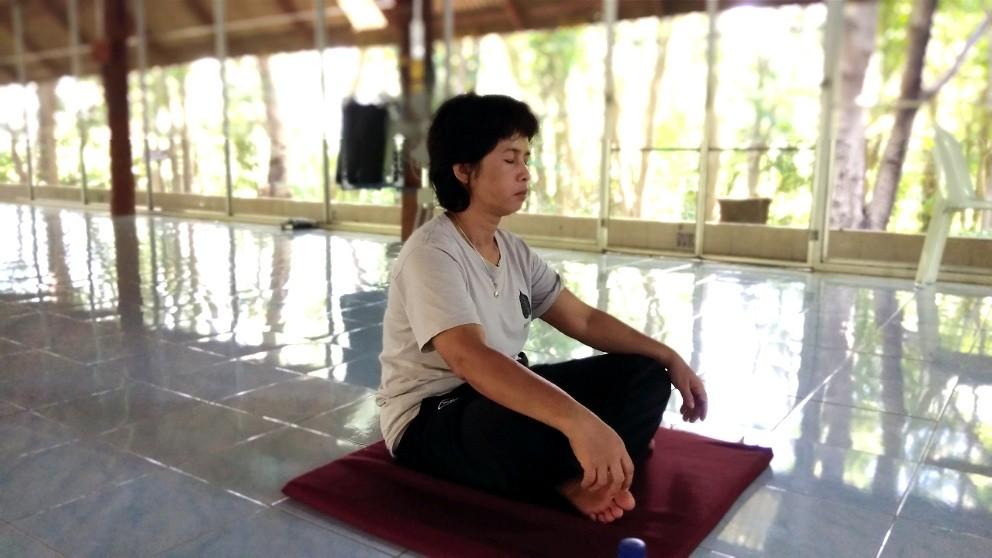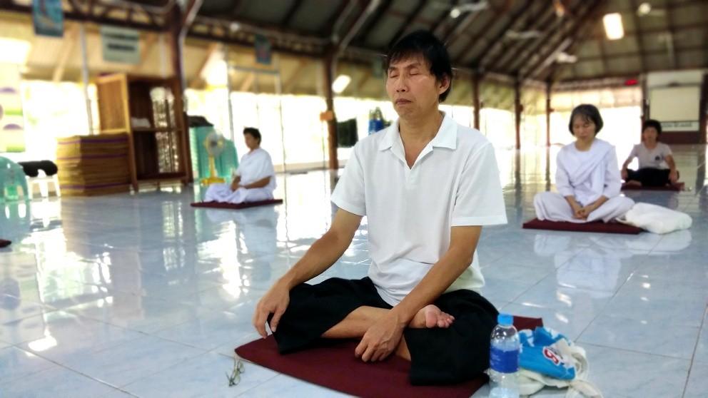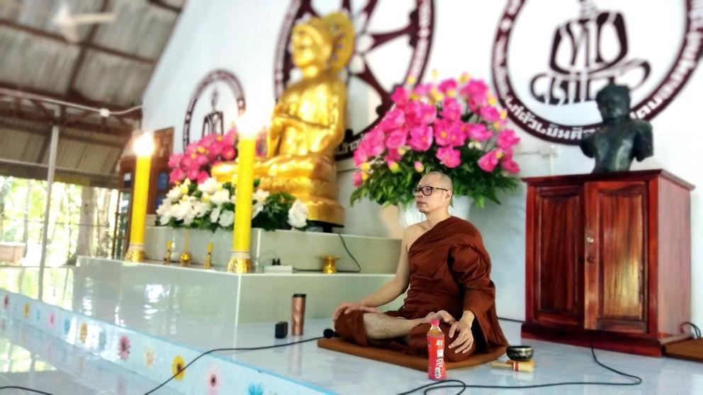 พระอาจารย์สุรกาจ นำผู้เข้าอบรมนั่งสมาธิภาวนา